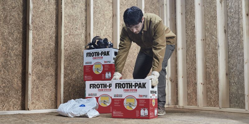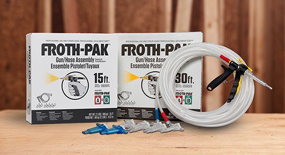 Froth-Pak™ is an all-in-one polyurethane foam system featuring a Class A Fire Rated formulation. With its two-component, quick-curing formula Froth-Pak™ Foam System can be utilized for both air sealing and insulation, making it ideal for insulating cavities while creating a continuous air barrier by sealing penetrations and joints.